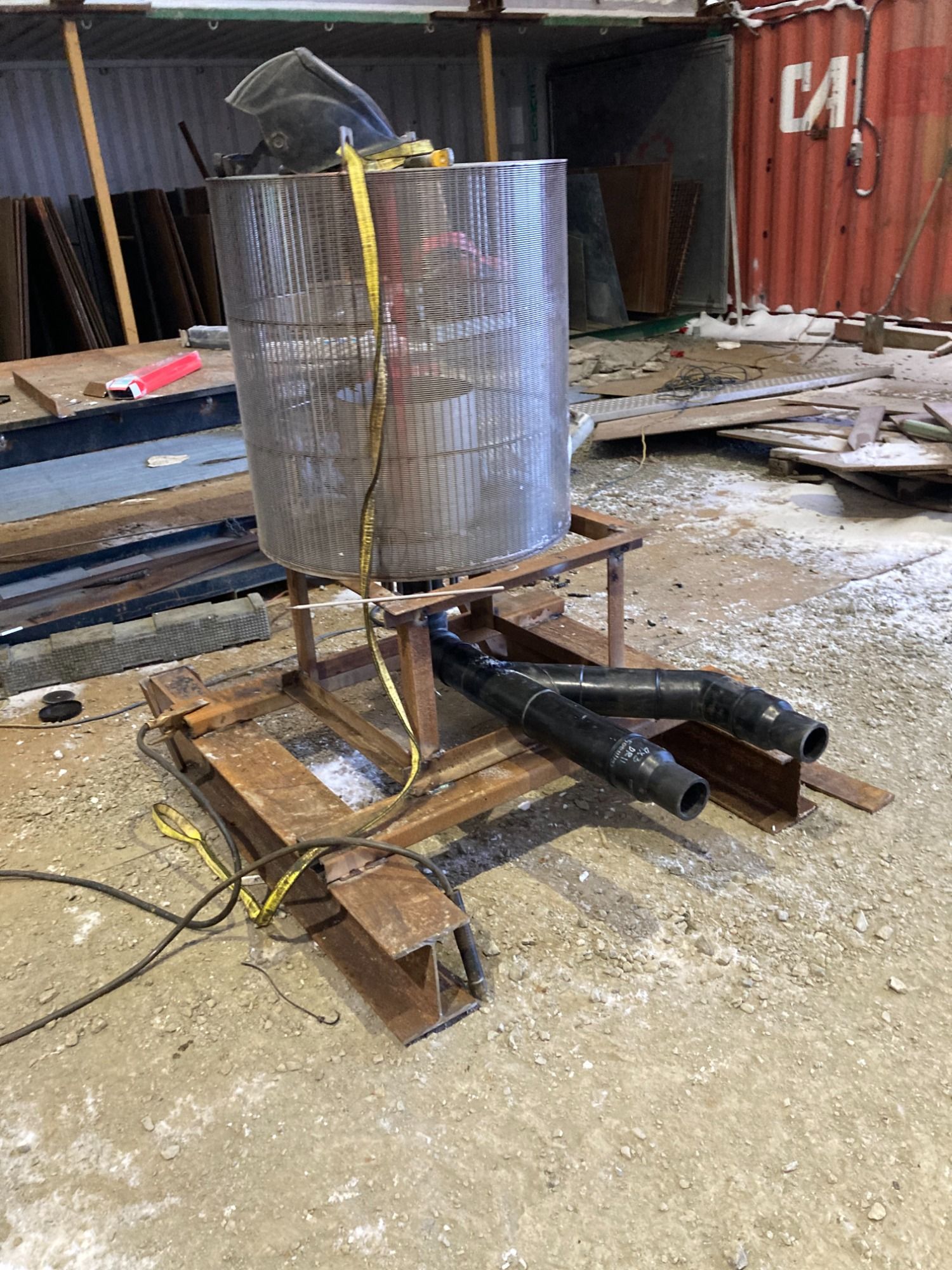 This is a fresh water intake with a fish screen and piping for a pump station. With hdpe pipe fusion and insulating.